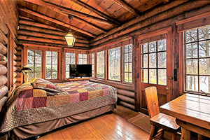 Canal Lake LodgeCanal Lake Lodge is a beautiful log and stone refuge in 100 acres of hills and woods overlooking a private lake. The building is heated and air-conditioned for your comfort. Enjoy the many available outdoor activities throughout the afternoon and evening, then grill some steaks outside and/or use the fully equipped kitchen. Late spring through fall, the king bed will be on the glassed porch overlooking the lake. Additional beds needed for extra guests can be set up in either the Log or Stone rooms. Double occupancy rate is $190/night